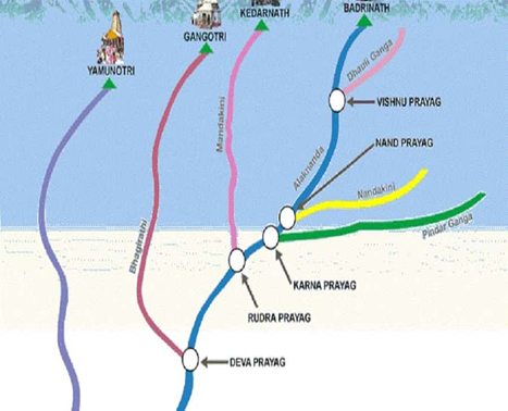 হিমালয় থেকে নেমে আসা বিভিন্ন নদী যেখানে অলকানন্দা নদীর সাথে মিলিত হয়েছে, সেই পাঁচটি পবিত্র সংগমস্থলকে পঞ্চপ্রয়াগ বলা হয়: