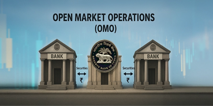 - OMO বিক্রয় (নগদ অর্থ শোষণ): যখন RBI সরকারি সিকিউরিটিজ বিক্রি করে, তখন এটি ব্যাঙ্কিং ব্যবস্থা থেকে নগদ অর্থ তুলে নেয়। এর ফলে ব্যাঙ্কগুলোর কাছে ঋণ দেওয়ার মতো অর্থের পরিমাণ কমে যায়, যা বাজারে অর্থের সরবরাহ কমিয়ে মুদ্রাস্ফীতির চাপ নিয়ন্ত্রণে সাহায্য করে।