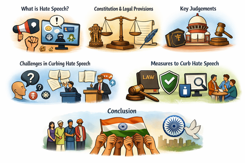 Curbing hate speech requires balancing Article 19(1)(a) with the Preamble’s Fraternity. Future-proofing India’s social fabric necessitates BNS-aligned legal clarity, AI-driven moderation under IT Rules 2026, and fostering a resilient, media-literate digital citizenry.