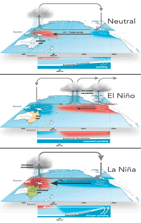 La Niña: The cooling phase, often leading to better-than-normal monsoons in India.
