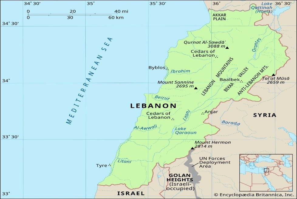 BordersSyria (north & east), Israel (south), Mediterranean Sea (west)