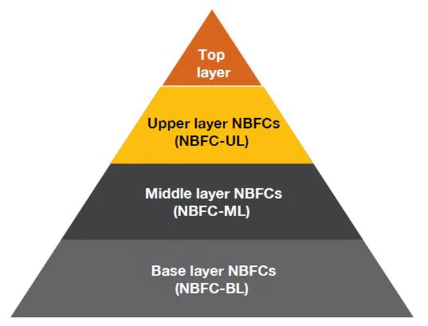 The SBR framework (effective since 2022) organizes NBFCs into four layers based on their size, activity, and risk.