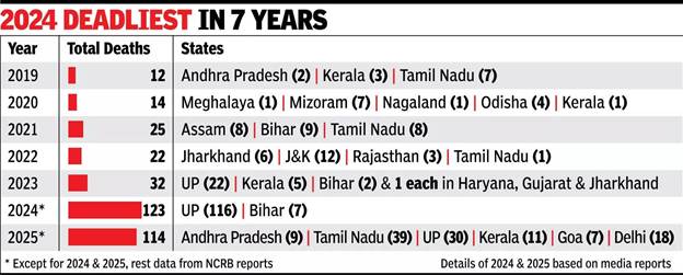 - 114 deaths reported in 2025 (till November) – second-highest in recent years.