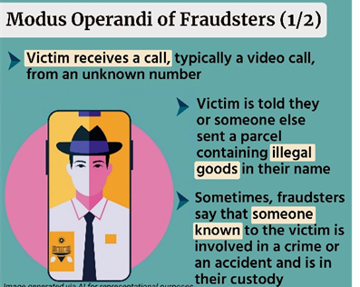 - The scam usually begins with a seemingly innocuous phone call, such as a notification about a parcel delivery or a request for KYC verification. Gradually, the scammer escalates the conversation, using increasingly aggressive tactics to induce panic, often alleging that the victim is involved in serious offenses such as money laundering, cybercrime, or drug trafficking.