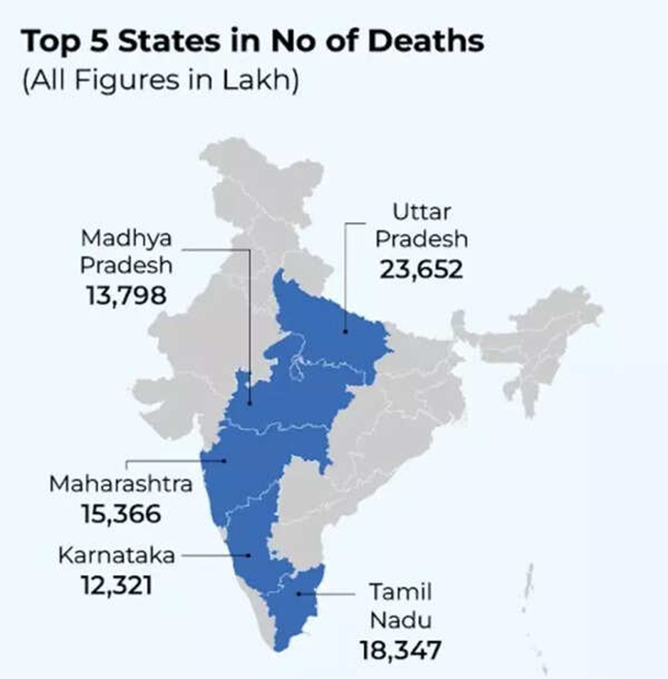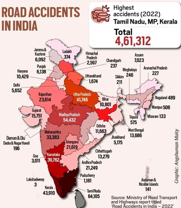 - Global Share: India accounts for approximately 10% of the world’s road crash fatalities, despite having only 1% of the world’s vehicles.